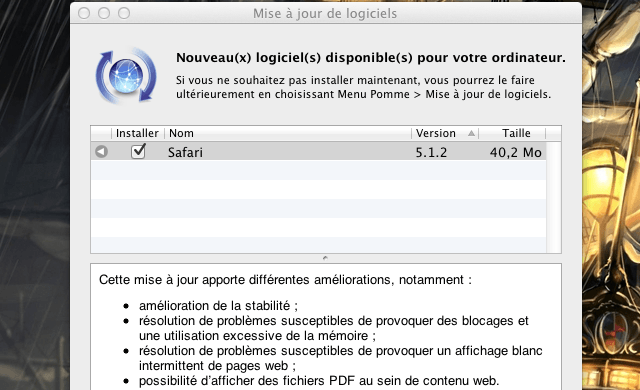 Mise à jour logiciels Mac OS X lion Juin 2012