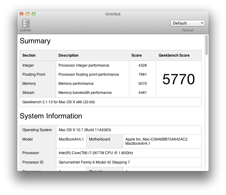 Test macbook air 2011 i7 1.8 Ghz 256 SSD 4 Giga RAM